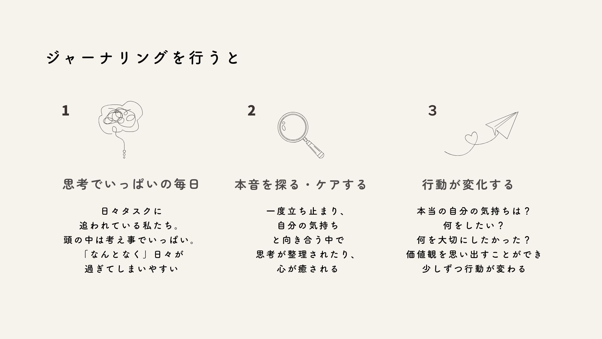 これらを改めて言葉にするジャーナリングを行いました。