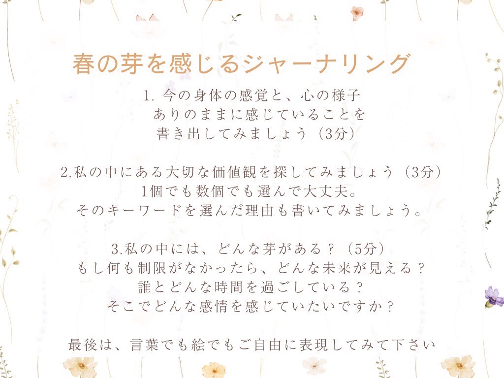 ジャーナリング習慣化プログラム開催レポート⑥|『心のブロックを溶かし、春の芽を感じるやさしいヨガとジャーナリング』saki